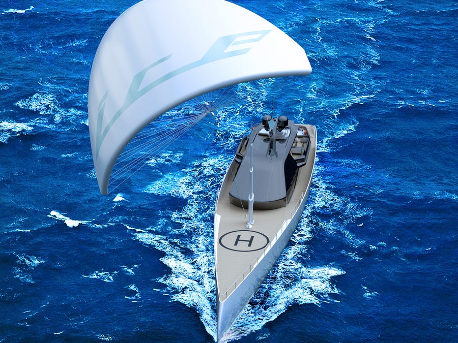 A futuristic yacht with a unique approach to efficiency — a gargantuan kite that helps pull it along – has been commissioned by a German entrepreneur.